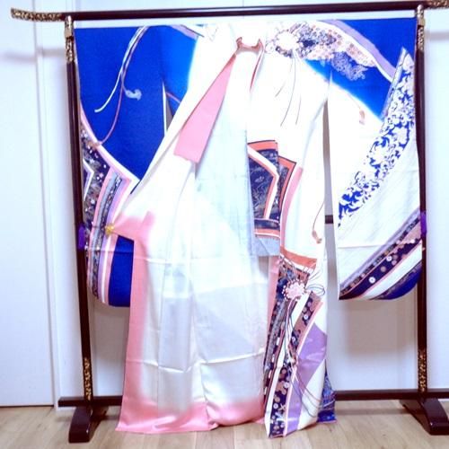 4.  > 大振袖 青地に白の流星 サクラ模様 バブル時代風振袖 163cm前後の方向けつけ襟付き