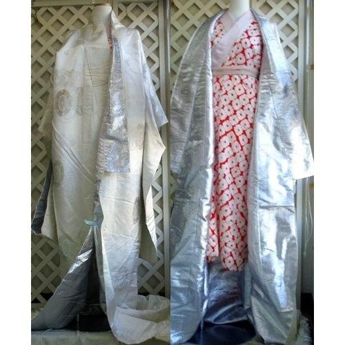 4.  > 結婚式 お色直し 白無垢の打ち掛け リバーシブル銀の裏地 タペストリーやリメイク材 舞台衣装 着物ドレス用生地
