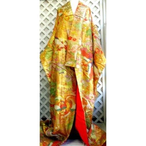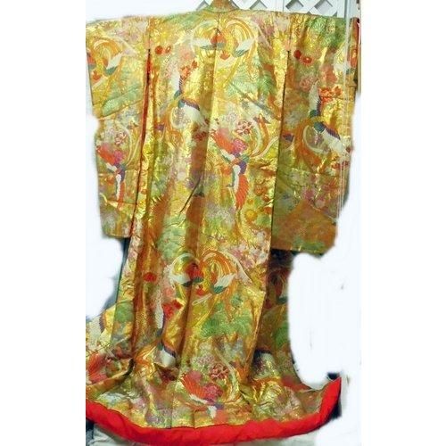 4.  > 結婚式 お色直し 金地の打ち掛け 鳳凰の豪華な刺繍 タペストリーやリメイク材 舞台衣装 着物ドレス用生地