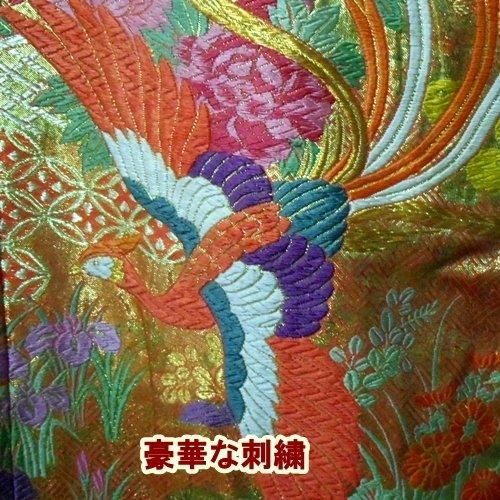 結婚式 お色直し 金地の打ち掛け 鳳凰の豪華な刺繍 タペストリーやリメイク材 舞台衣装 着物ドレス用生地
