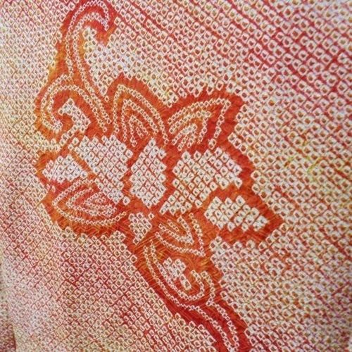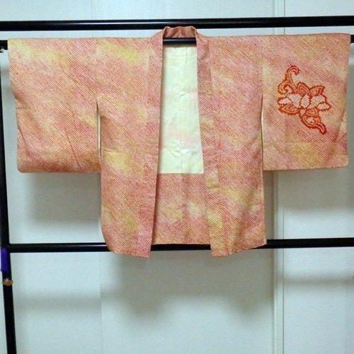 4.  > 羽織 正絹絞り染め 朱色花模様 父兄参観やお子さんの卒業式に 美品