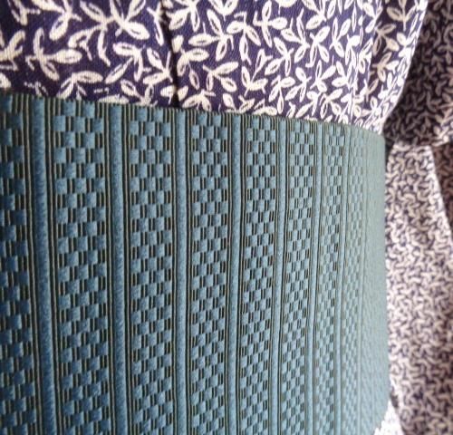 本来男物用着物や浴衣の帯ですが、美しい色合いなので、女性の浴衣や小紋、夏用着物にも使えます。