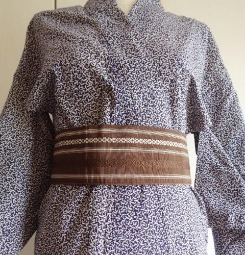 角帯 男物着物帯 浴衣 ブラウン系 袋仕立て 幅9cm 未使用に近い
