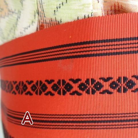 4.  > 半幅帯 正絹 博多帯 朱色 レッド系 幅13cm しなやかで頑丈なお品 未使用に近い