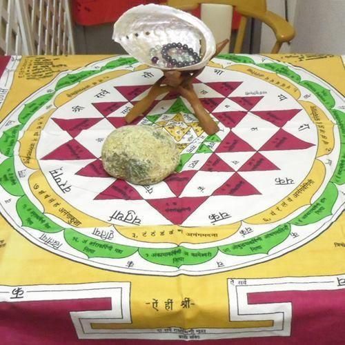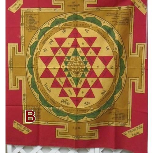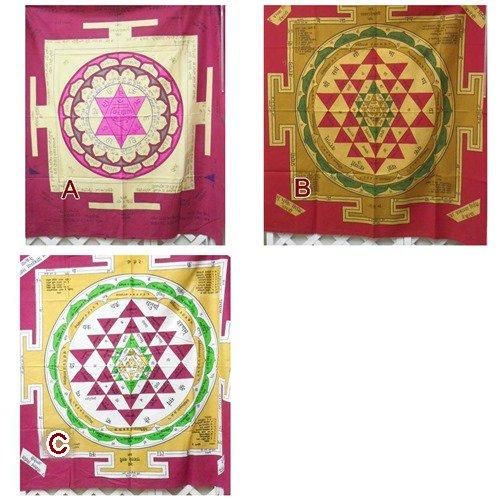 テーブルクロス正方形 ヤントラという幸福を呼ぶマークが染められています