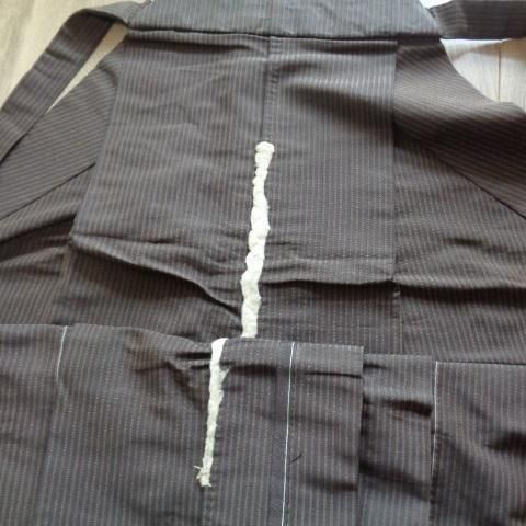 A 正絹 縞柄ブラウン生地 へら無し 汚れはありませんが、背板の隅、擦り切れています 硬くて頑丈な生地